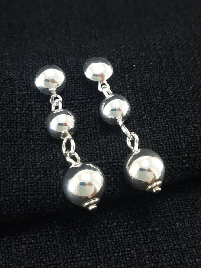 Brinco base meia esfera com bolas prateada pêndulo