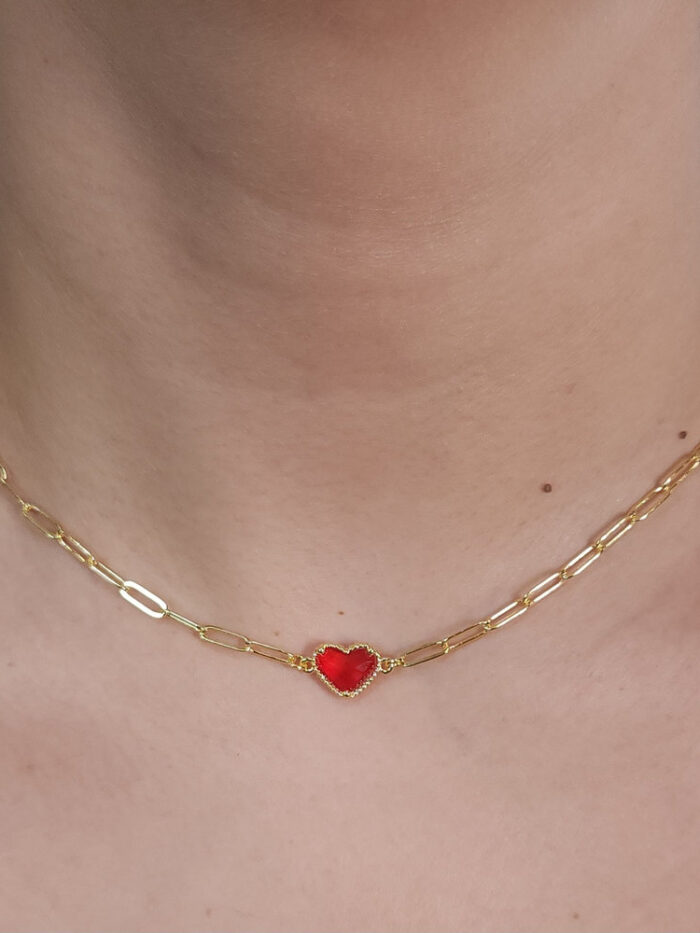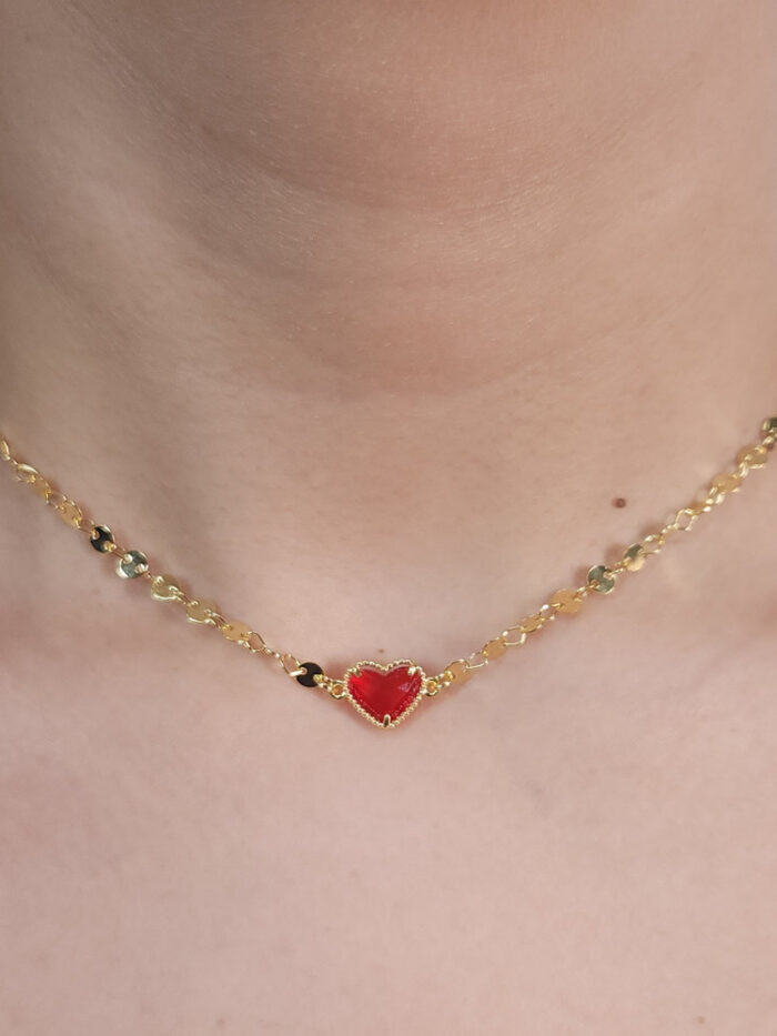 tamanho 34cm,extensor 9cm,fecho lagosta.Gargantilha chocker coração elos detalhados