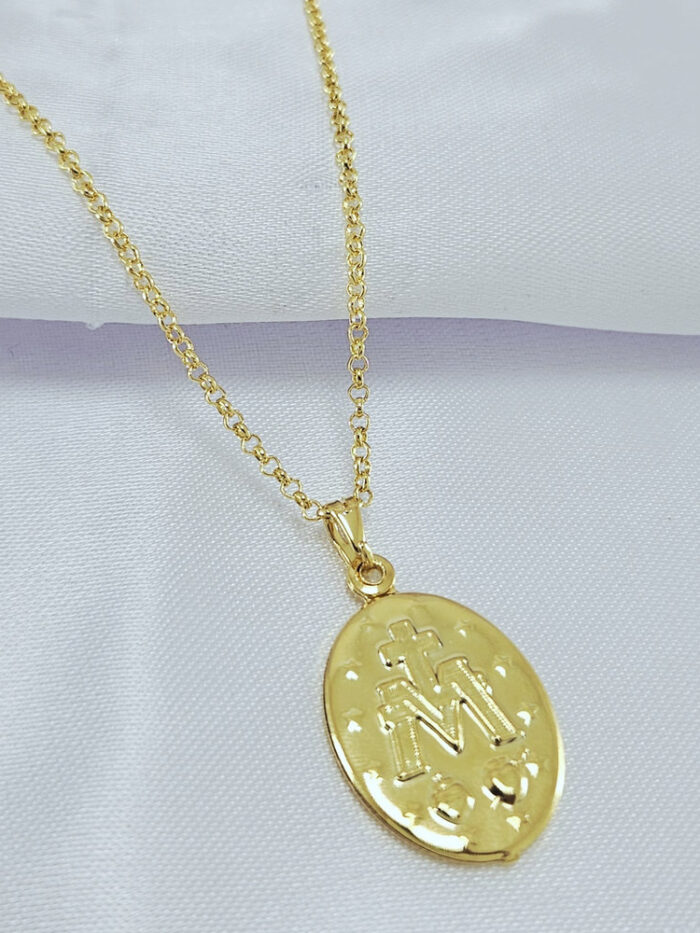 Gargantilha com pingente Jesus Cristo borda detalhada