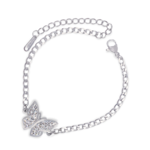 Pulseira elos cartier e lacraia com borboletas e corações cristal
