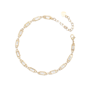 Pulseira flor margarida com borboleta branca e pedra cristal
