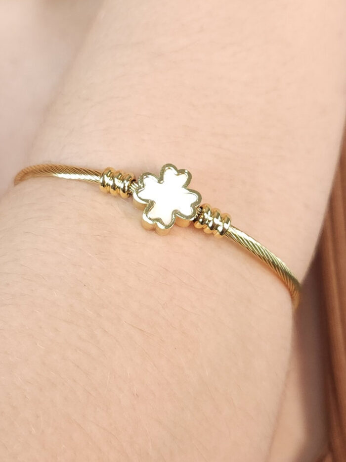 R$ 10,90Pulseira trevo branco madre pérola