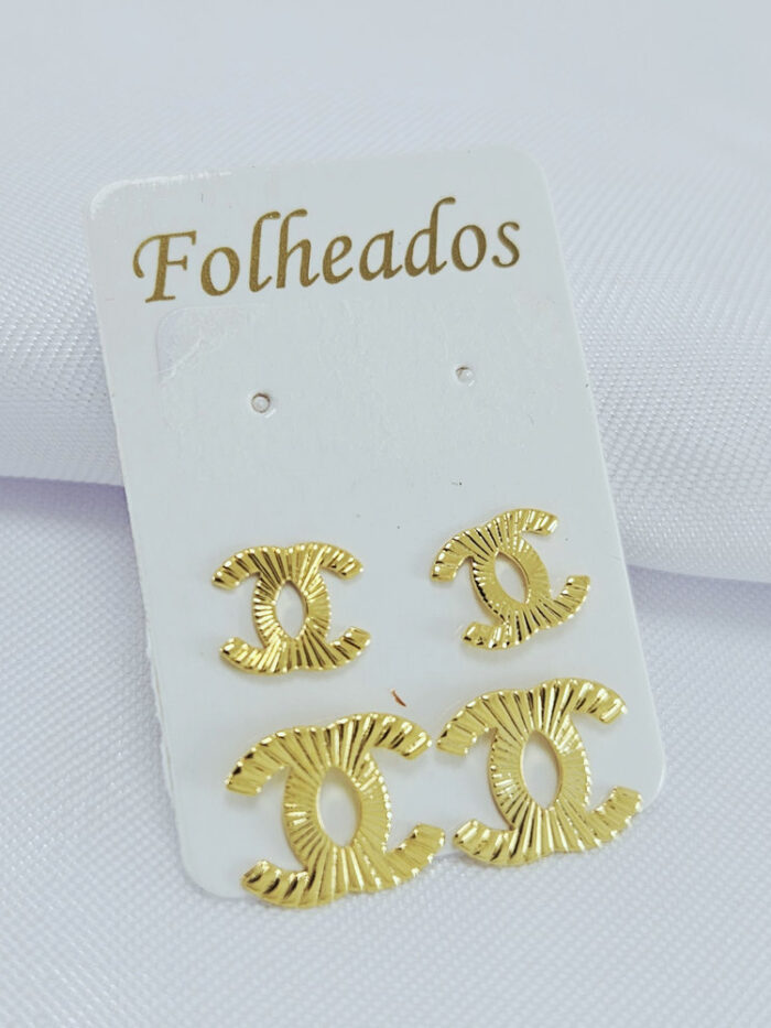 Brinco duplo estilo chanel trabalhado dourado