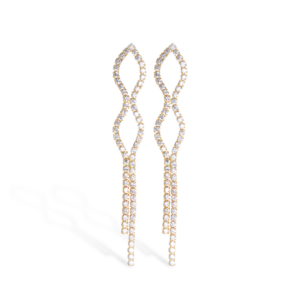 Brinco gota com fio flores cravejados