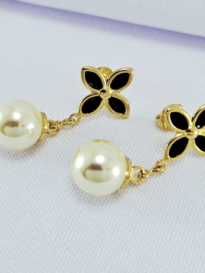 Brinco com zircônia fixa e elo vazado com pérola pendurada