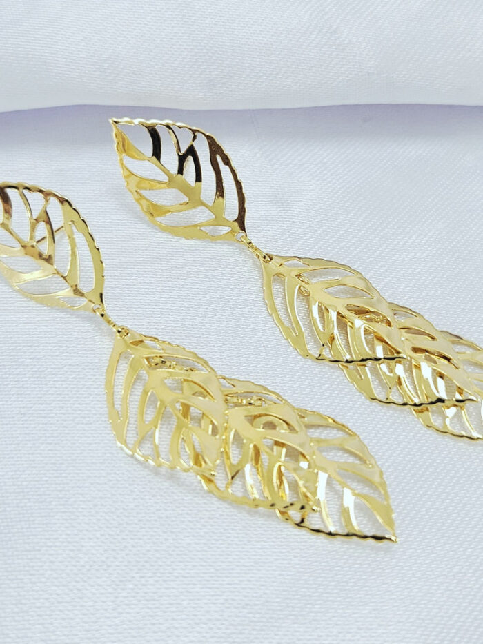 Brinco folha cravejado com detalhe gota