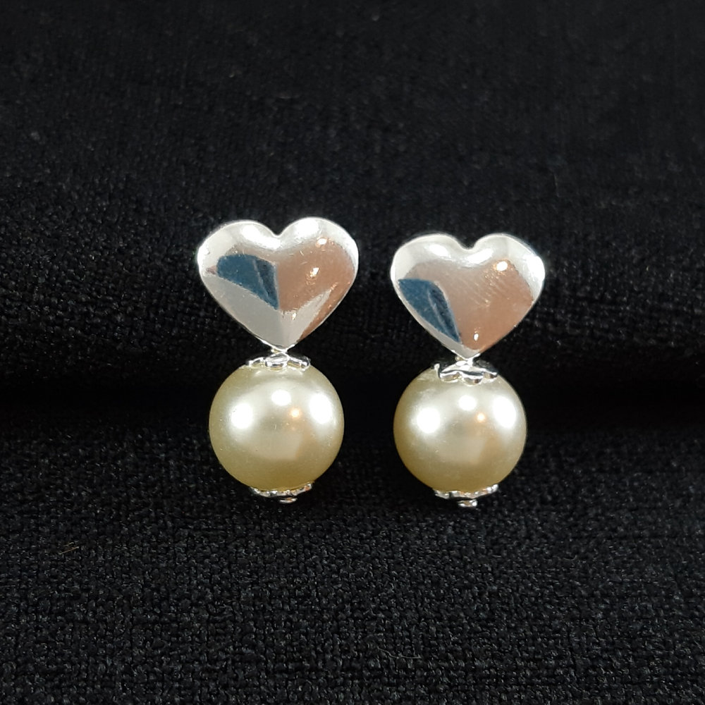 Brinco base coração prateado com pérola