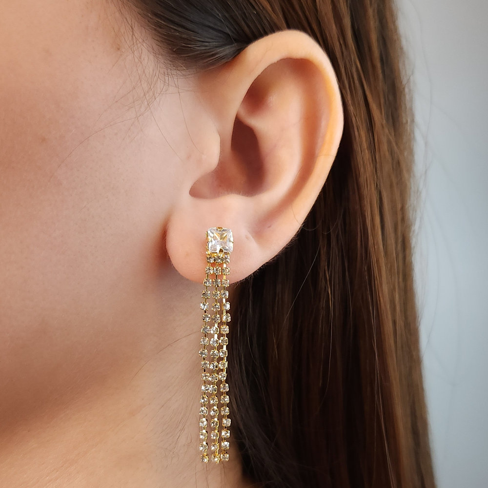 Brinco base quadrado fios em zircônia