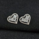 Brinco coração fio cravejado com pedra cristal quadrada