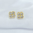 Brinco trevo pedras cristal com base detalhada
