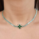 Choker riviera pedras baguete verde claro com trevo verde