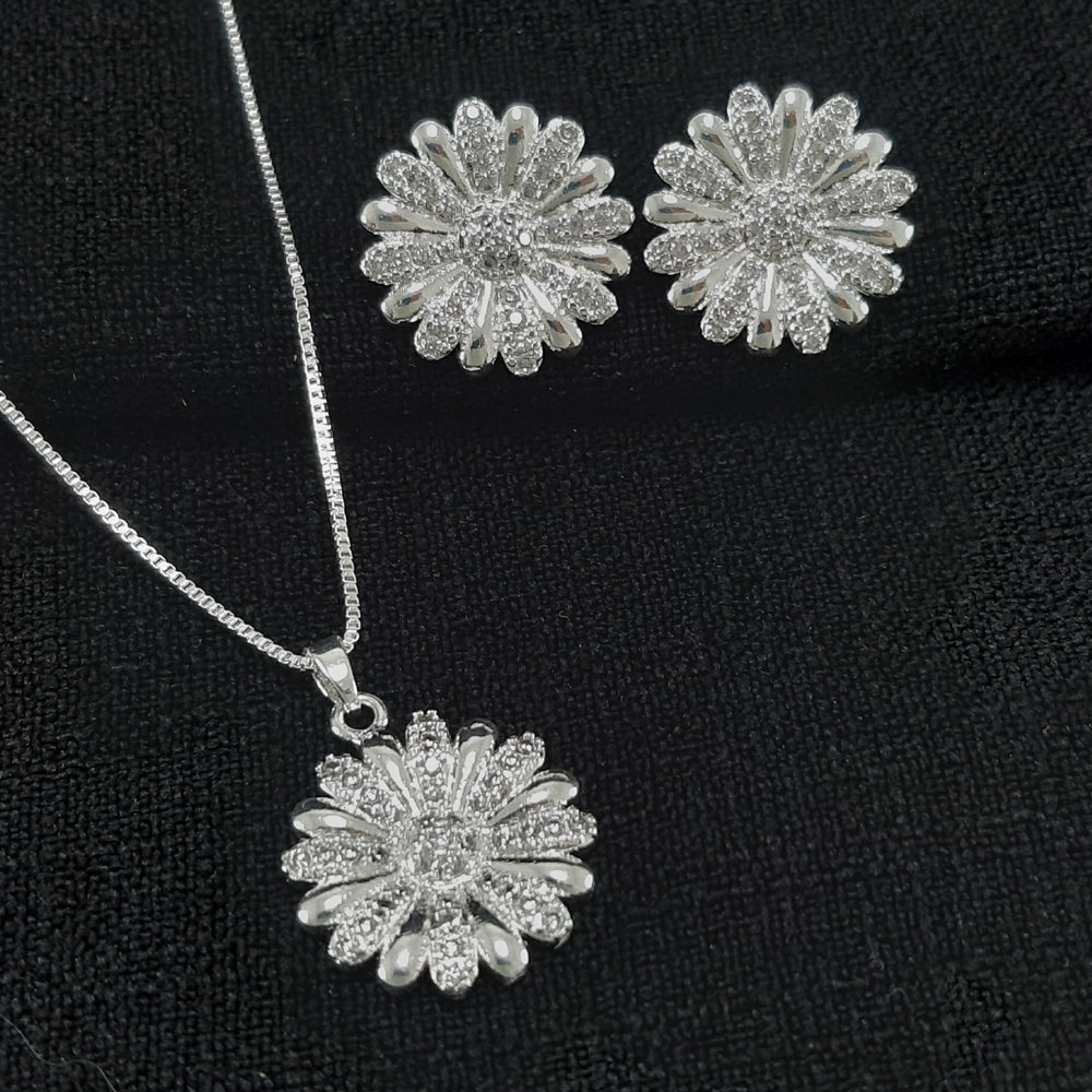 Conjunto folheada a prata girassol cravejado folheada a prata.