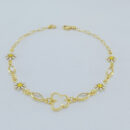 Pulseira flor margarida com borboleta branca e pedra cristal