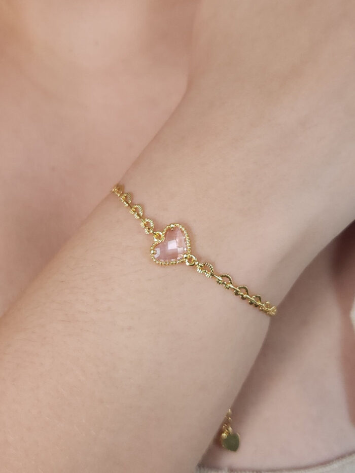 Pulseira flor margarida com borboleta branca e pedra cristal